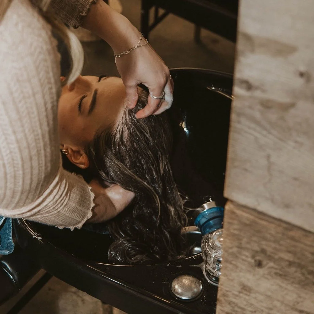 We dry brush your scalp to exfoliate and increase blood flow. Next we apply a color-safe clay wash to remove product buildup, oil, and impurities. Then we finish with a hair conditioner, and scalp massage.
